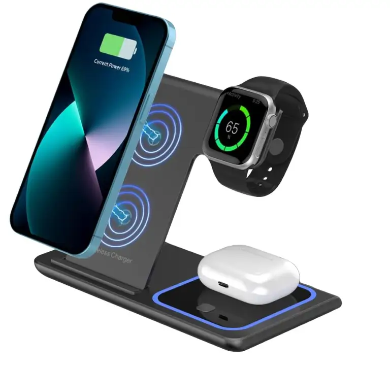 המאפשרת טעינת 3 מכשירים במקביל: טלפון אוזניות ושעון חכם