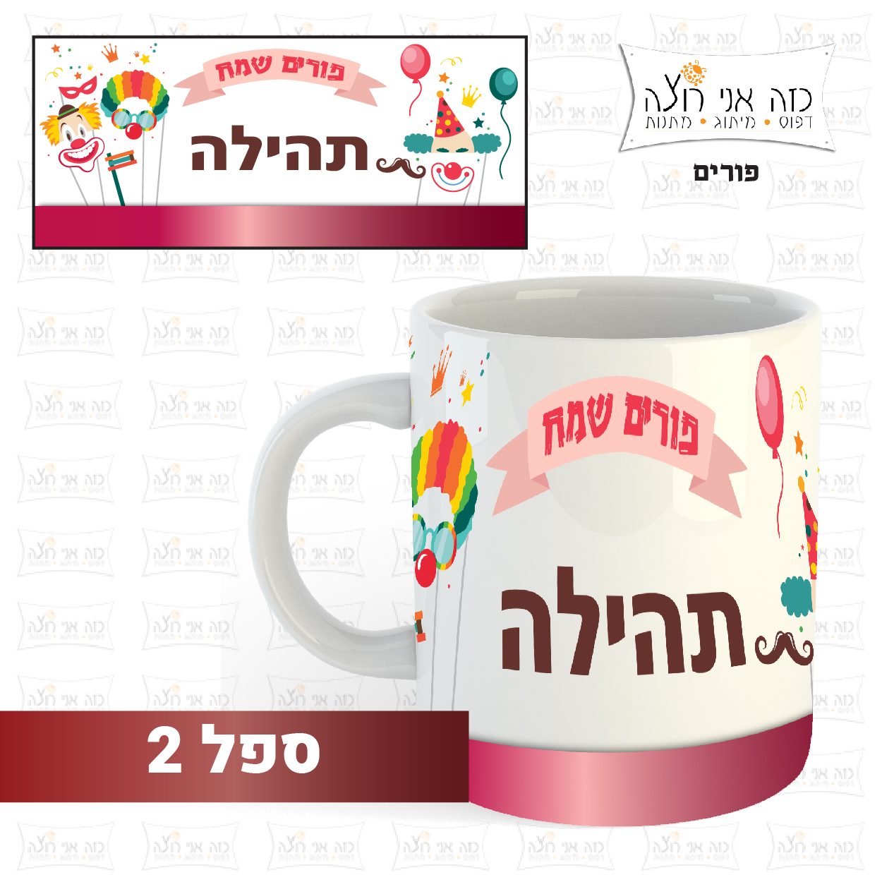 ספל מודפס לפורים